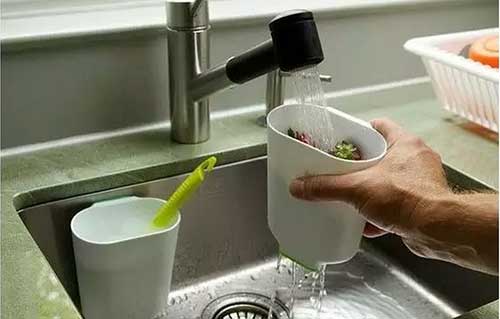 這款別致的廚房水槽伴侶采用了PVC材料制造,可以說是一款一物多用的產(chǎn)品。首先,它是一款稱職的垃圾箱,當(dāng)我們切菜的時候,可以把它靠近切菜板,這樣,就可以將需要丟棄的垃圾直接放入到伴侶中,起到了小型垃圾箱的作用,從而避免污物將水槽堵死,非常人性化。